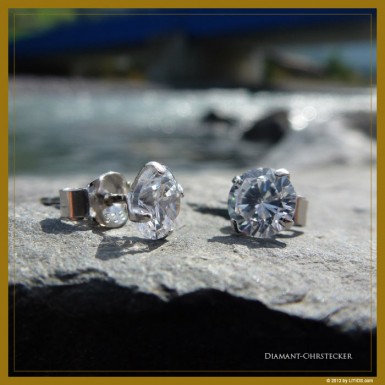 La gracia eterna de Venus. 1 par de valiosos pendientes de plata 925 con un diamante de circonia cristal claro cada uno, finamente pulido y faceteado. Diámetro: 6 mm / Largo: 15 mm